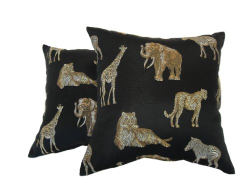 Fabric made of: 80-percent polyester 20-percent rayon.Spot clean.Set of two pilllows.Filled with 100-percent polyester. Tigers, elephants, panthers and other animals is colorations of gold and silver are woven on black sateen. A style of Africa just for you..