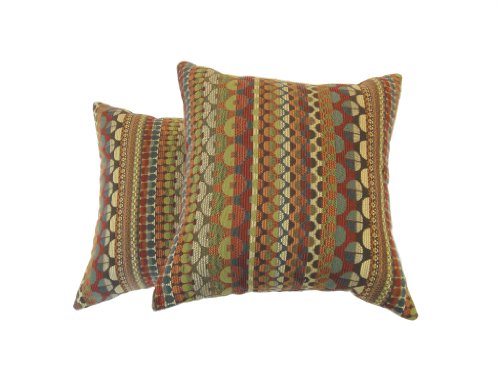Set of 2 pilllows.Spot clean.Fabric made of: 43-percent polyester, 39-percent rayon, 18-percent cotton.Filled along 100-percent polyester. What a plethora of color, pattern and texture is contained on this decorative pillow. A whole match for any furniture unit in any accommodation of yours..