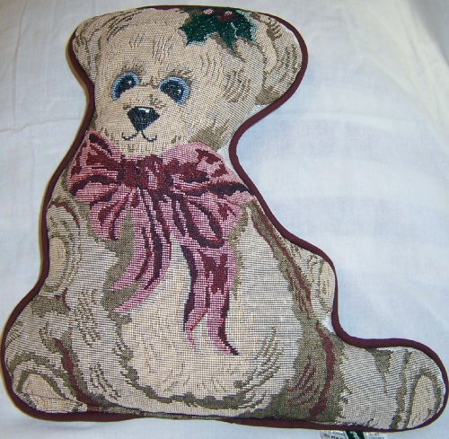 Needlepoint endure on front with holly accent.Solid wine color back and trim.Stuffed Christmas vacation undergo pillow. Spot clean. Approx. 14" tall..